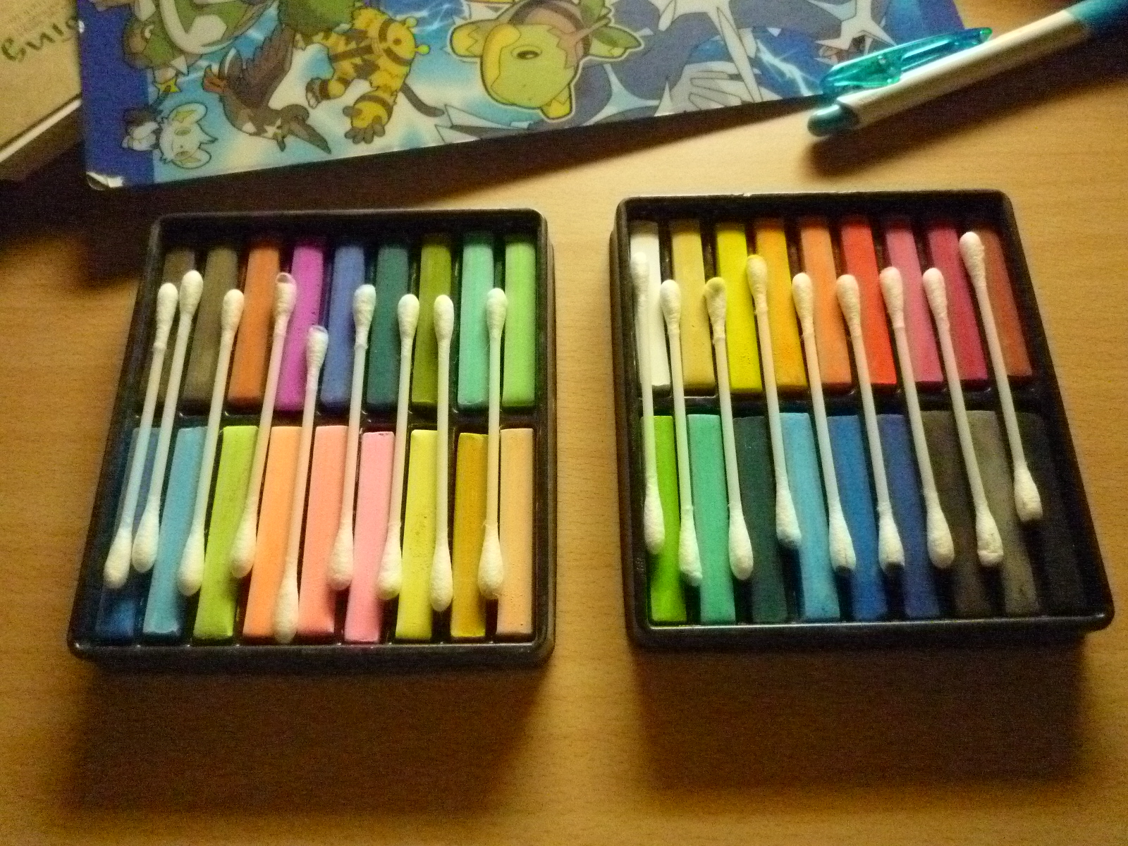 で、今回パステル中心で、細かいところは色鉛筆で塗ることにしました